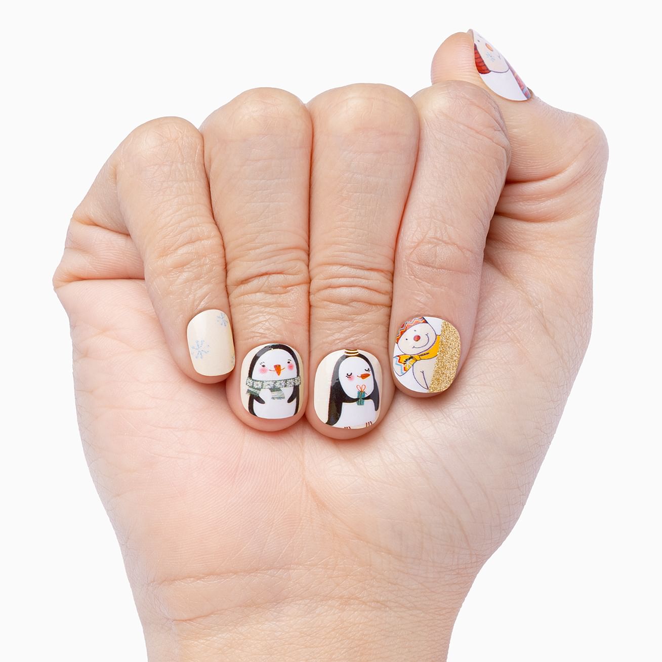 There's no place like Gnome Sweet Gnome! Not even in Nome, Alaska. While these puns are terrible, this nail wrap set is pure whimsical winter fantasy with droll trolls, shimmering snowflakes, preppy plaids, and sweater weather wraps in blue hues, glossy grays, and topped with silver glitter. It should be known that a layer of top coat will keep this manicure in tip-top shape.