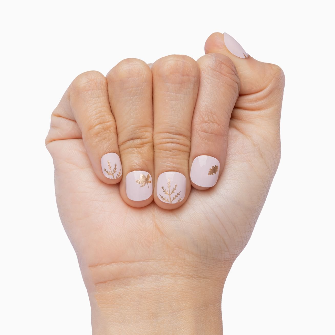 You'll fall hard for the delicate metallic gold leaves dancing against glossy pale pink background with this manicure. Keep Falling for Gold going strong by adding a layer of protective top coat.